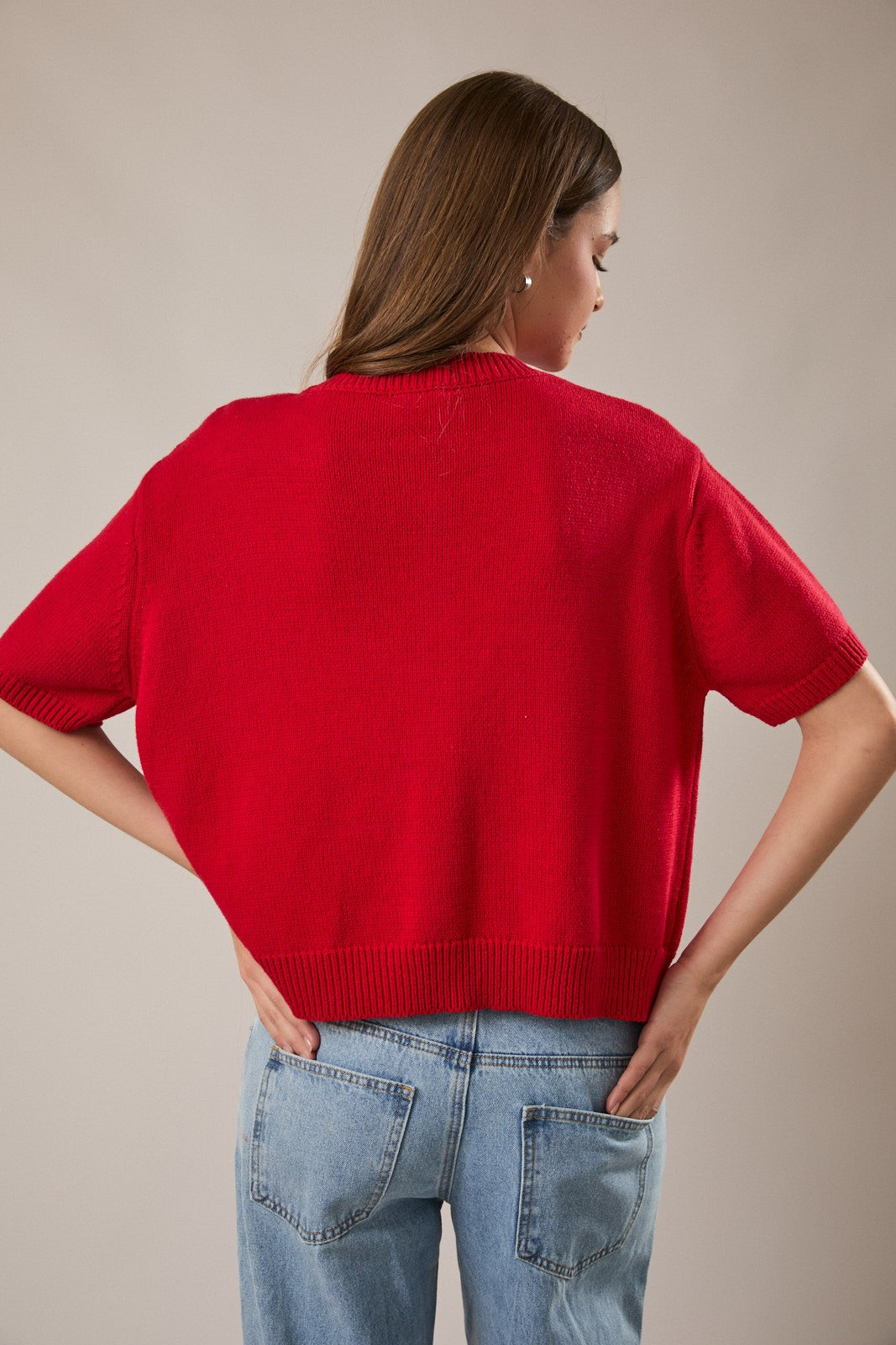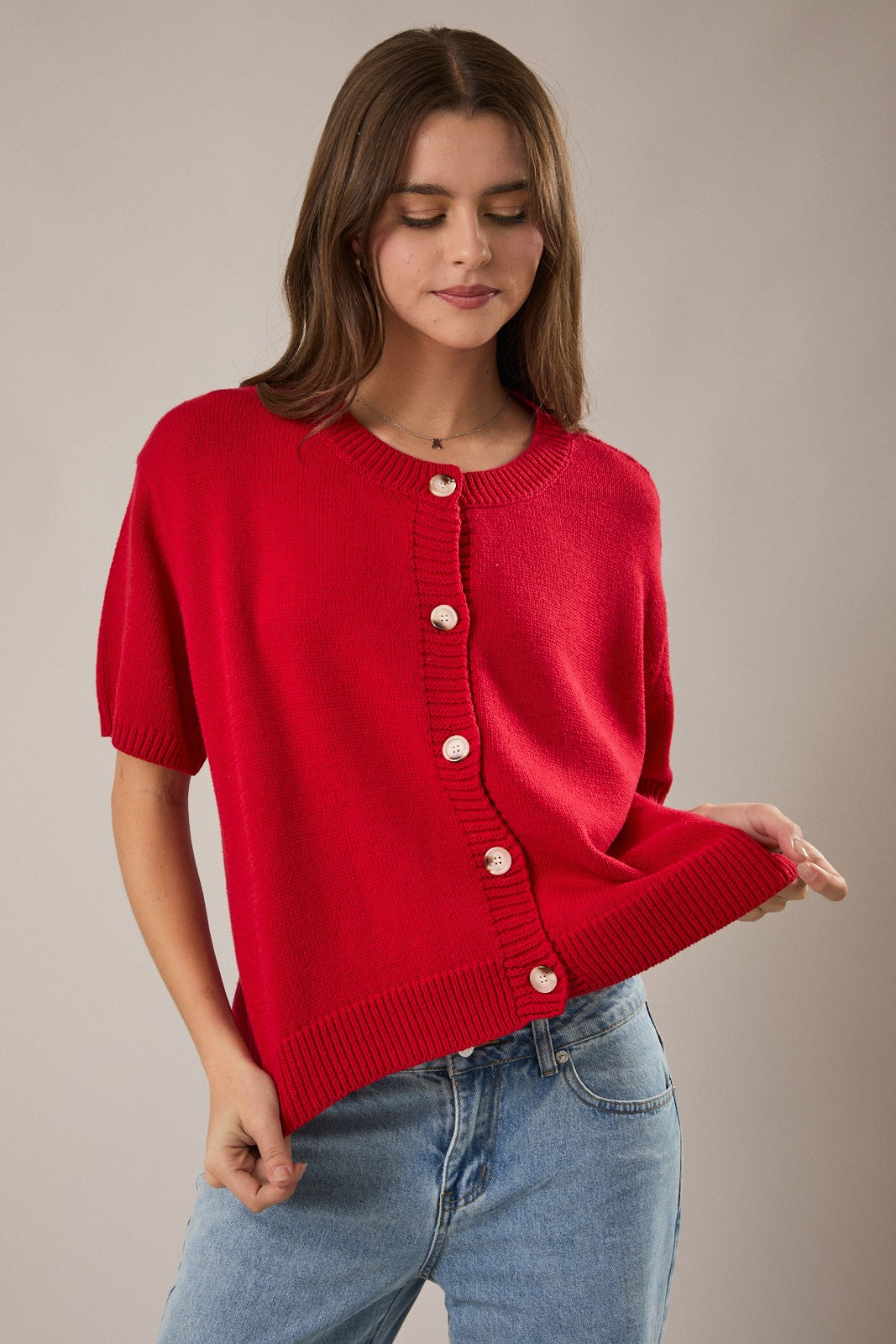Short Sleeve Sweater Cardigan with button front