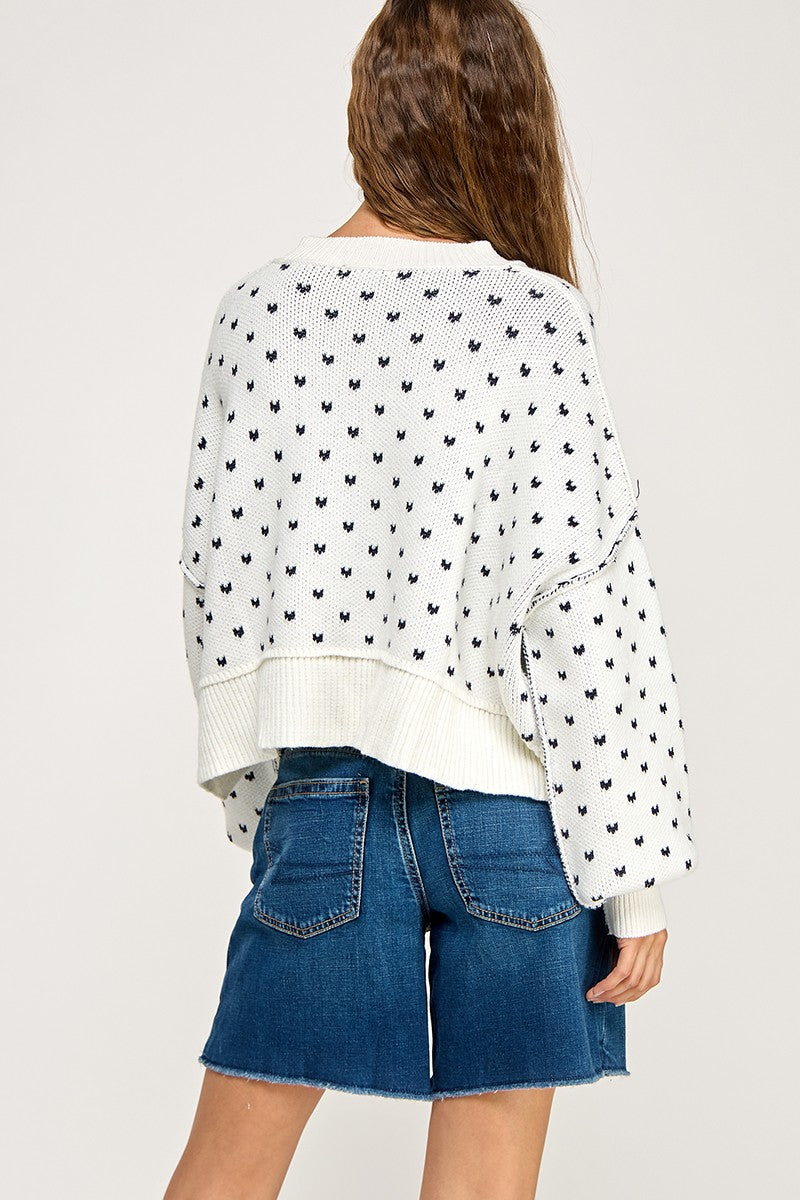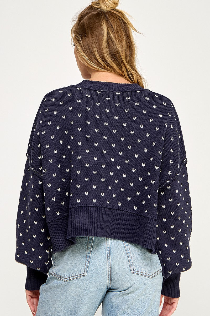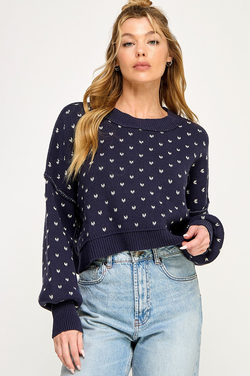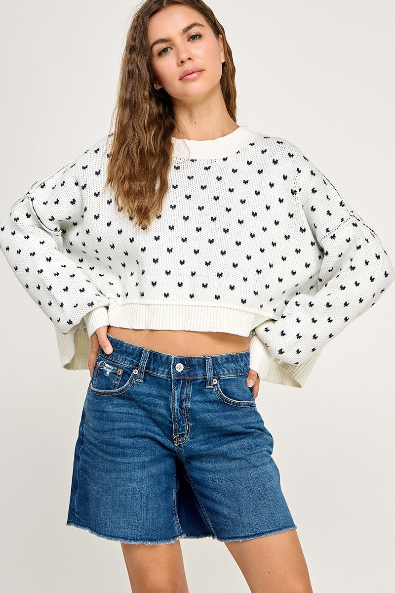 Your favorite cropped sweater now featured in a playful patterned fabrication and the same slouchy silhouette you know and love.
