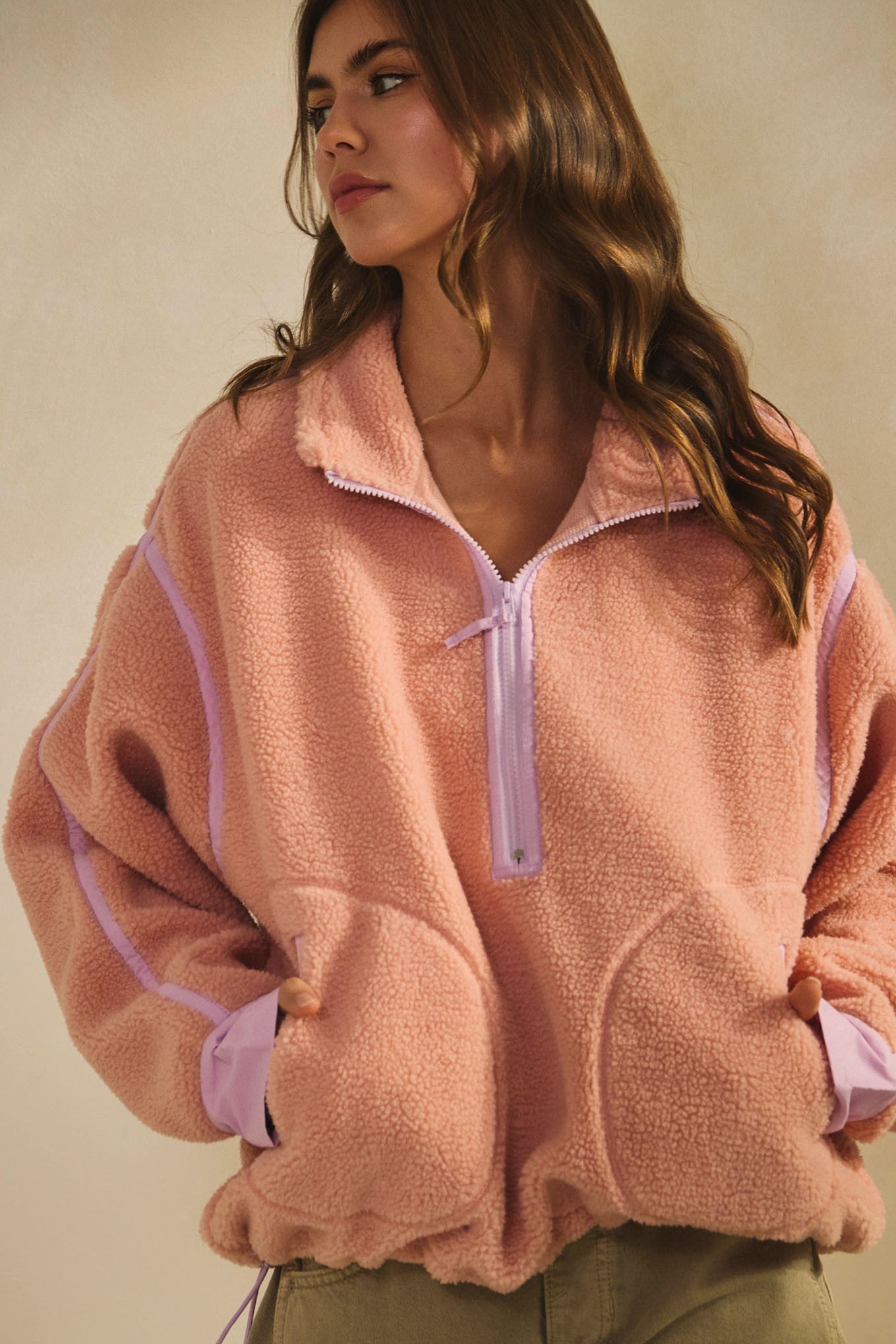 The On The Slopes Pullover keeps you warm with soft fleece construction and a convenient front zipper for easy layering. Hidden pockets provide practical storage without disrupting the clean design. Perfect for outdoor adventures or casual everyday wear.