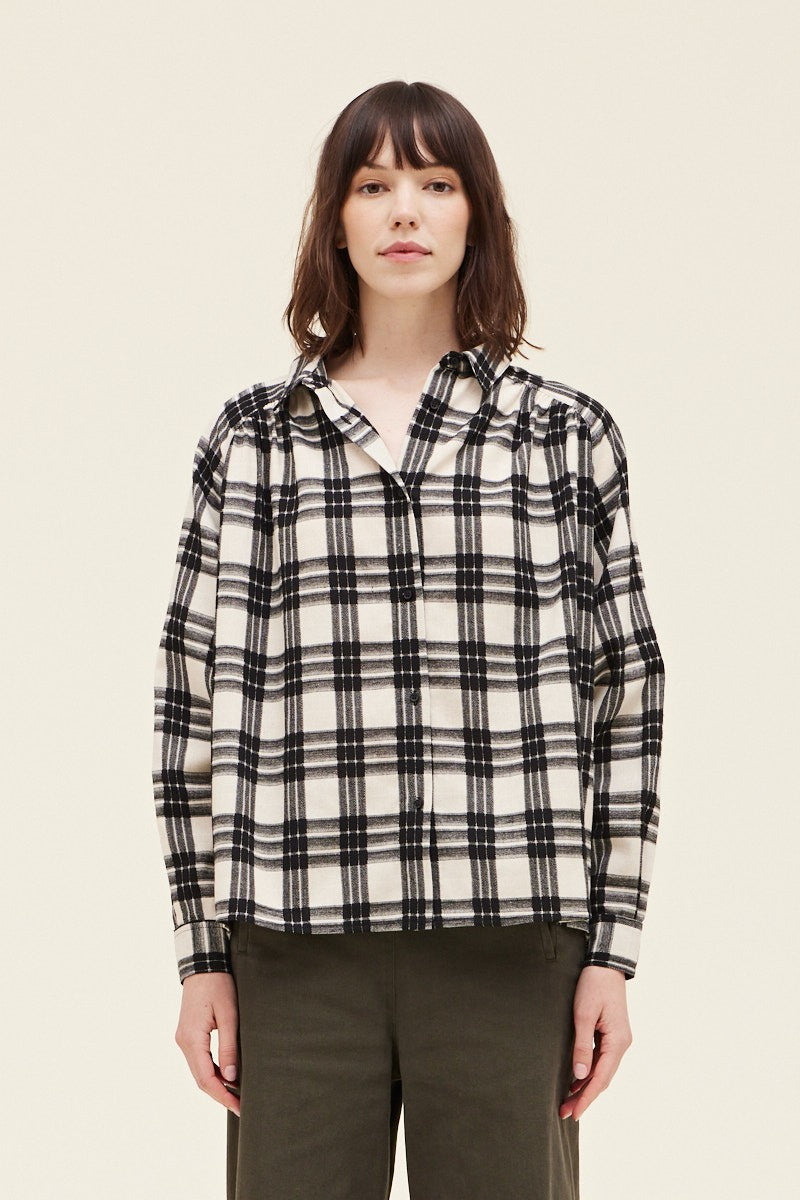The Good To Go Shirt features a classic plaid pattern with shirred detailing for a flattering fit. This easy-to-wear piece transitions seamlessly from work to weekend. The structured fabric holds its shape while the shirring adds subtle dimension and comfort. A timeless staple that pairs with everything in your closet.