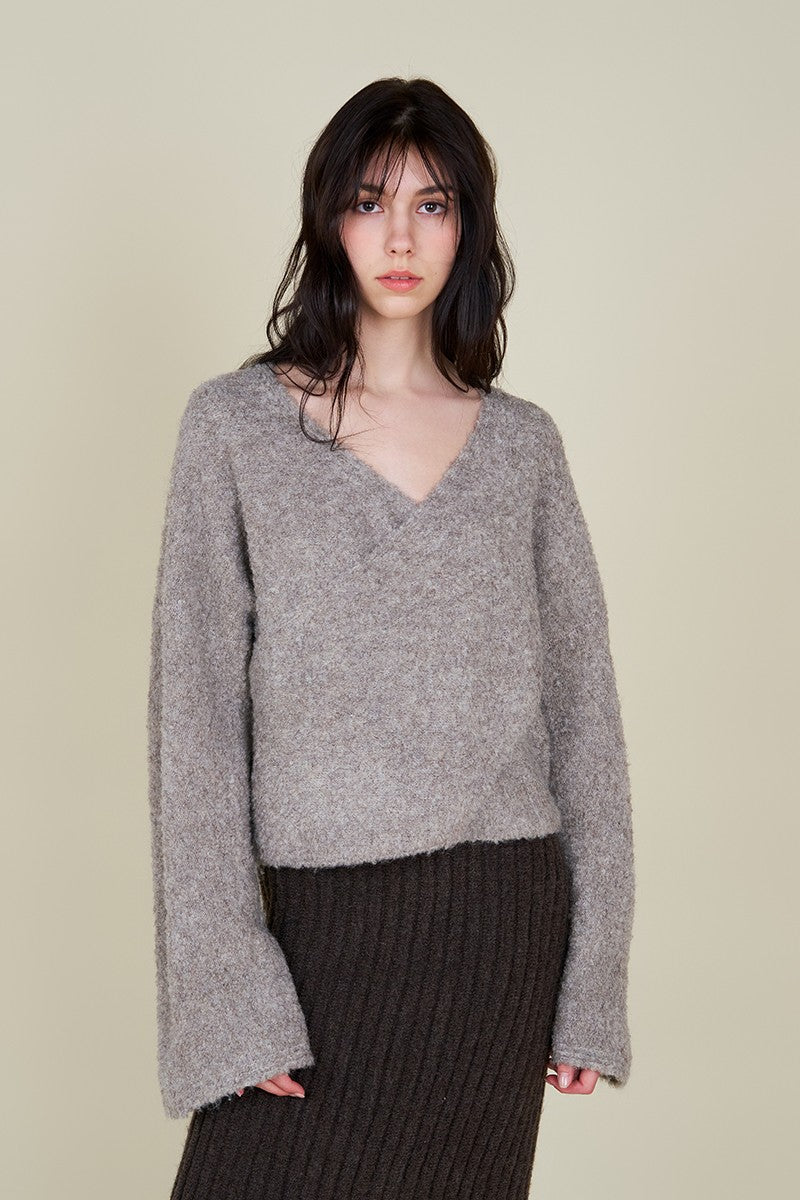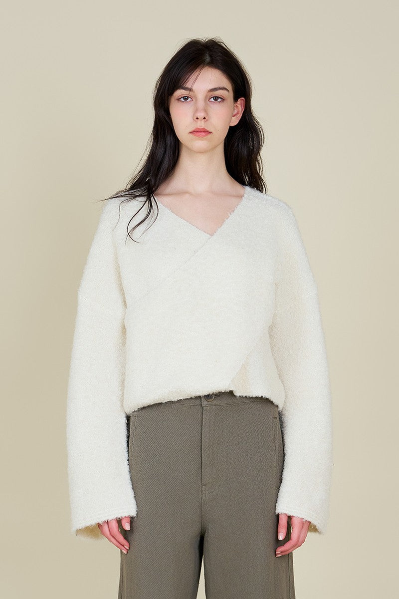 Flattering v-neck wrap sweater that cinches at the waist for a defined silhouette. The wrap style is adjustable so you can customize the fit to your preference. Elegant and comfortable, this sweater works beautifully for both casual and more polished occasions.