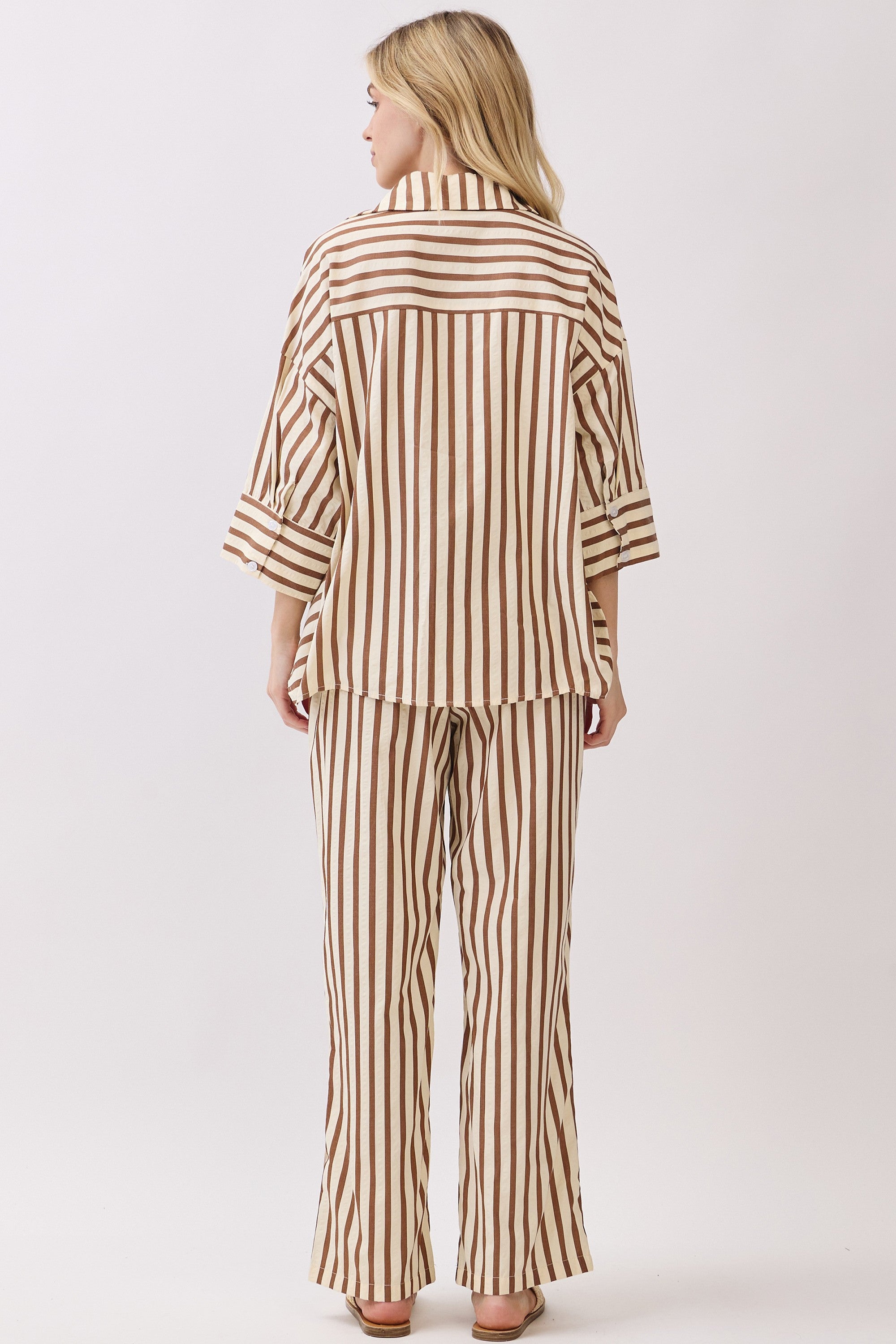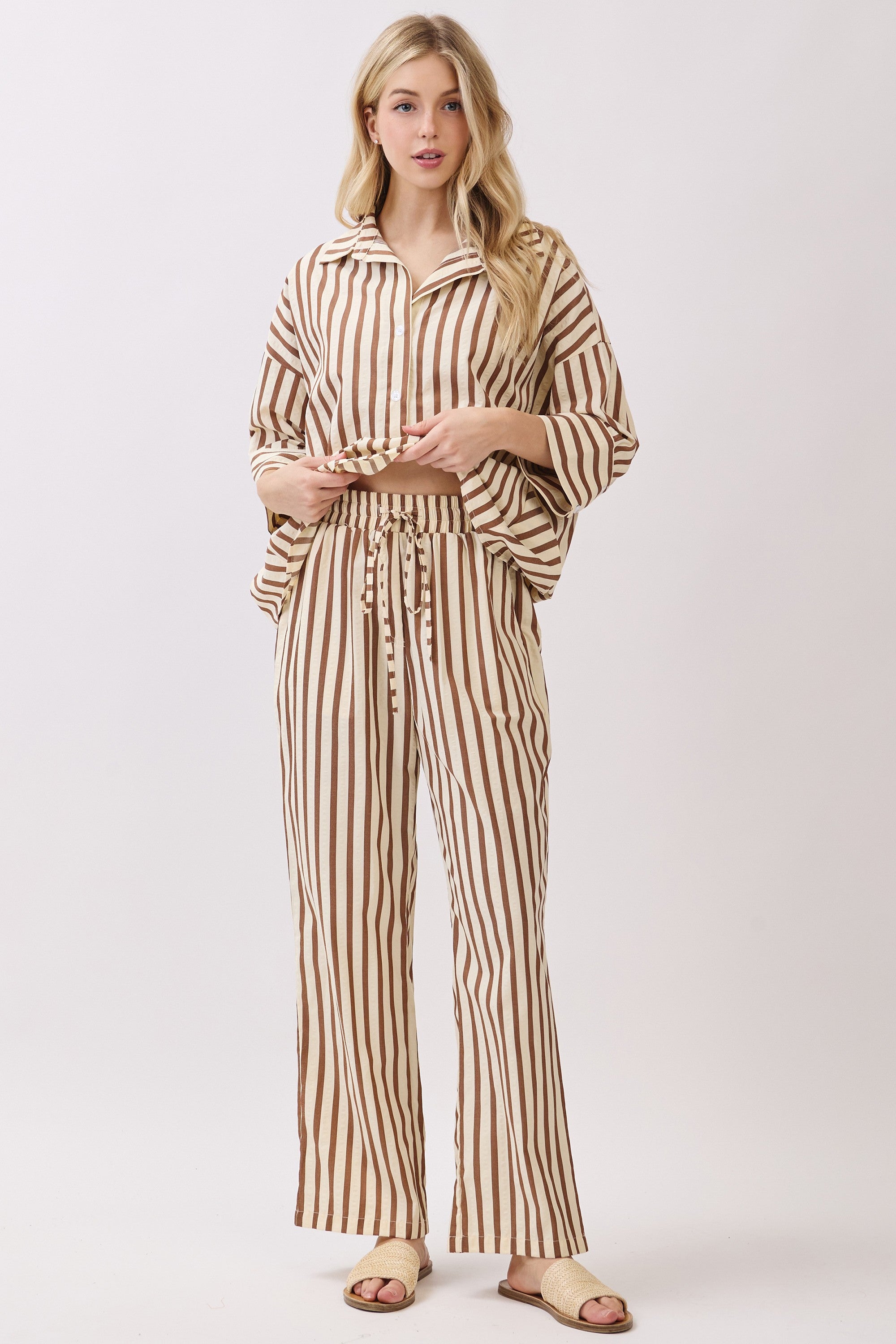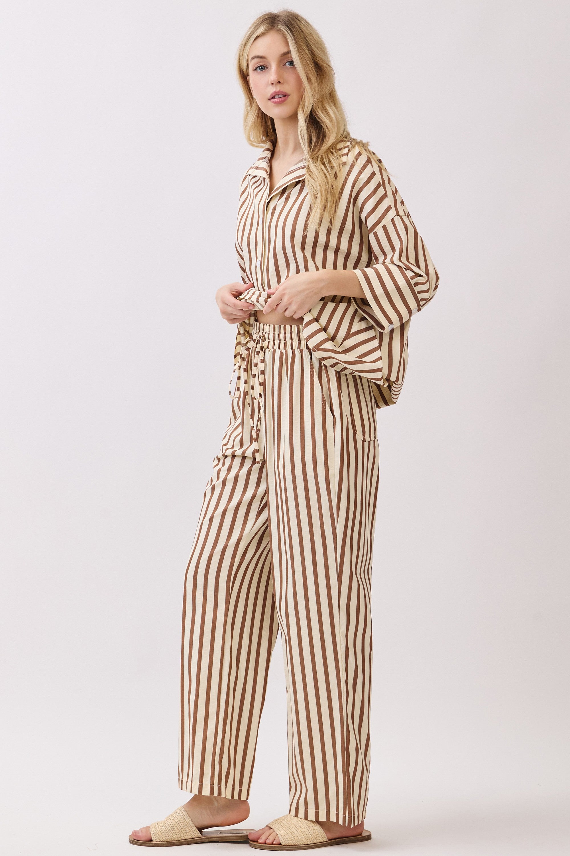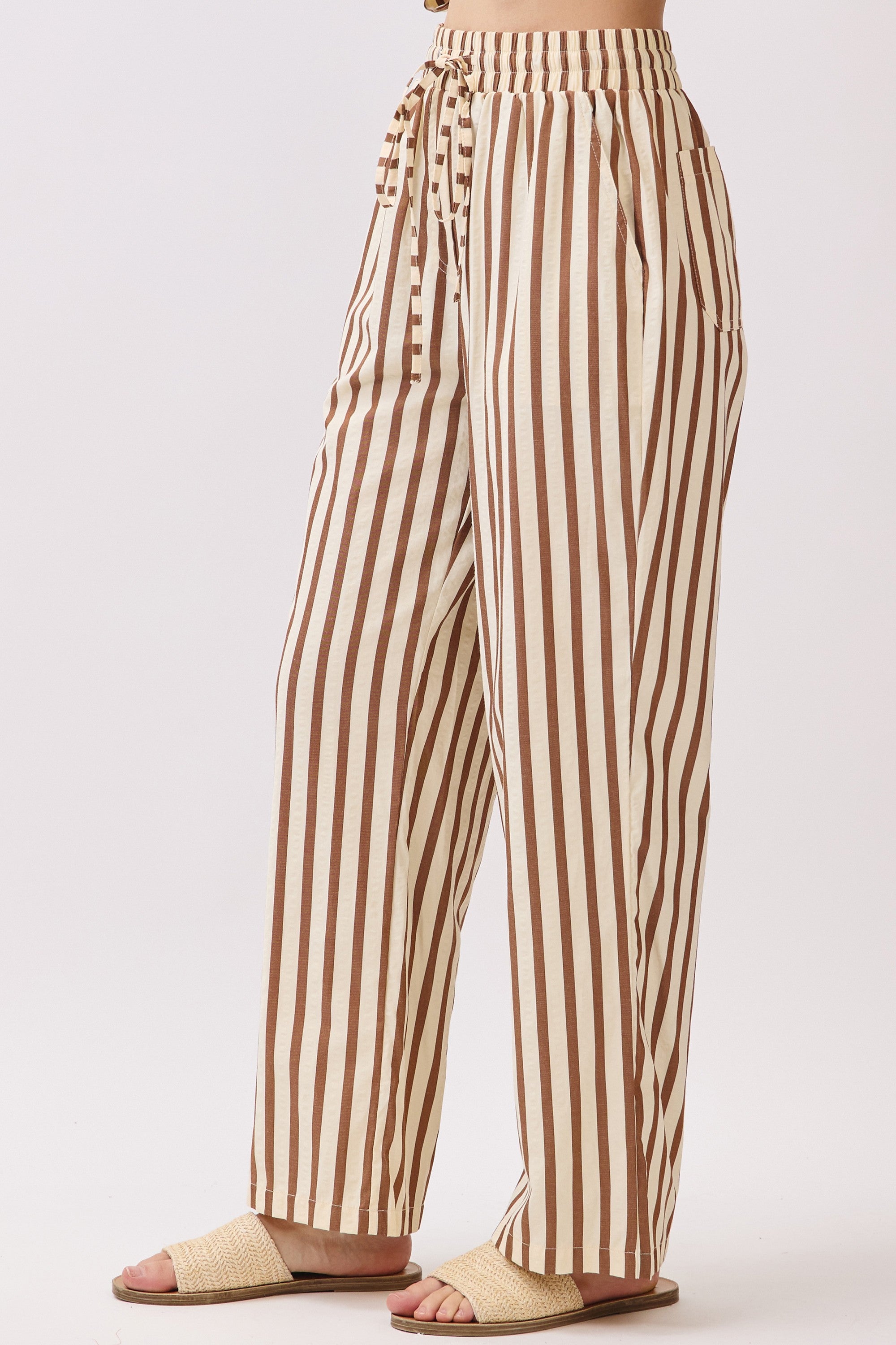 Striped Wide-Leg Pants Featuring High-Waist And Drawstring.
