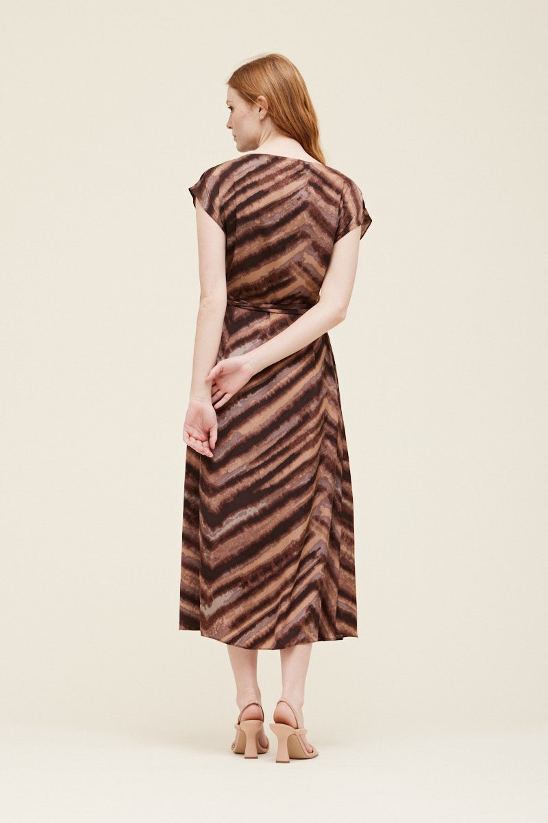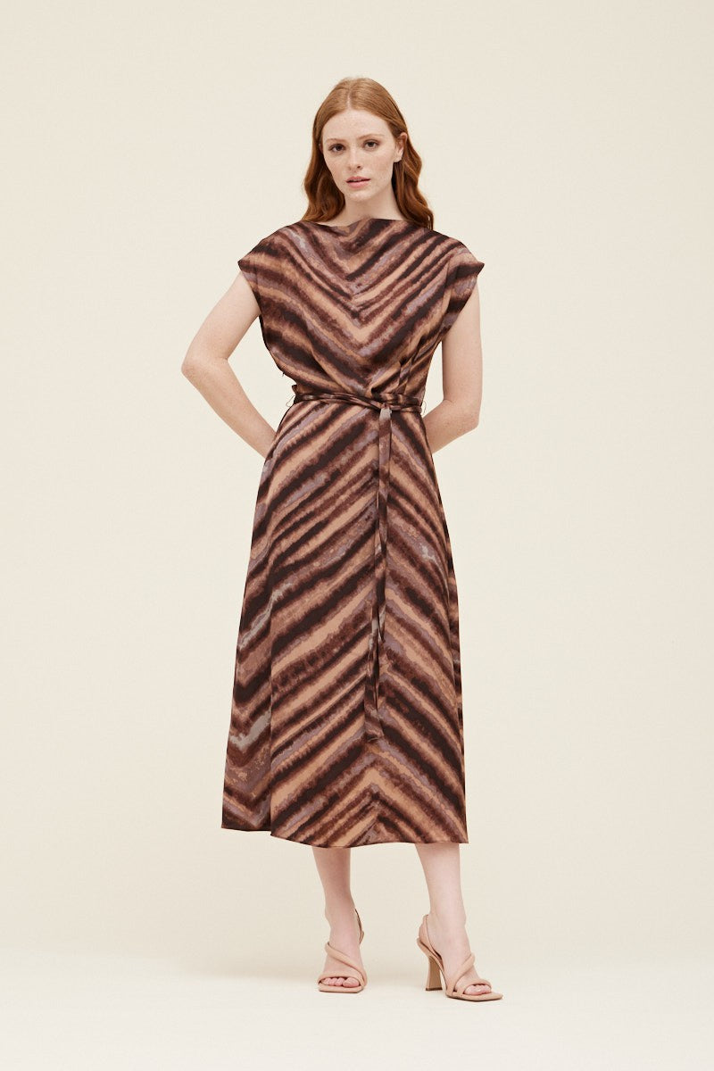 This elegant midi dress features a graceful drape front and beautiful satin print that catches the light. The flowing silhouette skims your body for a flattering look that works for dinners out or special occasions. Easy to style and comfortable to wear all day long, it's a dress you'll reach for again and again.